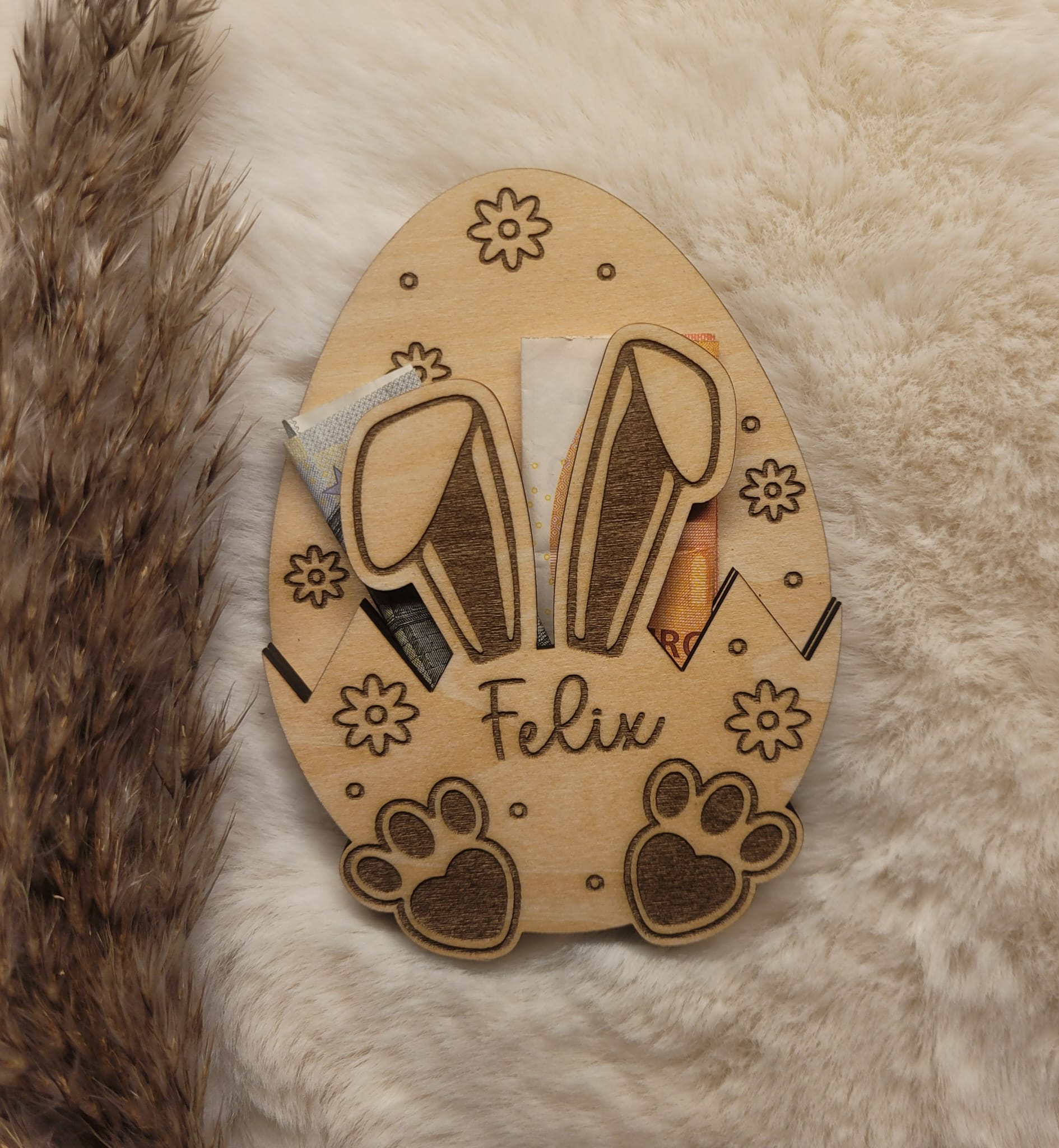 Persönliches Holzei mit Name / Geldgeschenk