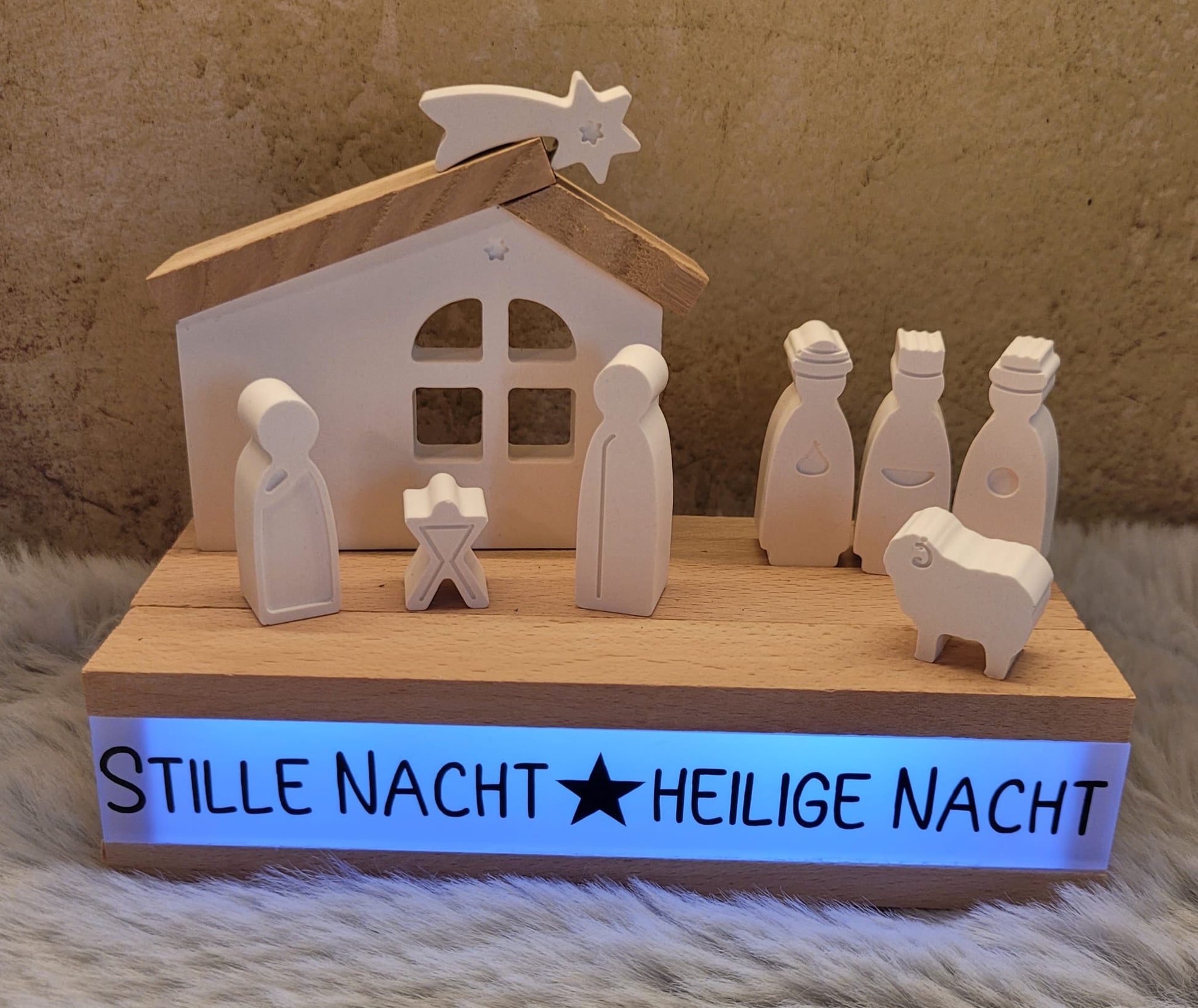 Erleben Sie die moderne Weihnachtskrippe gegossen aus Keramik, mit einzigartigen Details und einer Kombination aus Klötzchen. Wählen Sie zwischen den Farben hell und dunkel. Lassen Sie sich von den kleinen Figuren verzaubern. Mit einer Länge von 16cm und einer Breite von 7cm eignet sich diese Krippe perfekt für Ihr Zuhause, jedoch nicht für den Außenbereich oder Nässe. Kleine Luftblasen im gegossenen sind kein Reklamationsgrund.