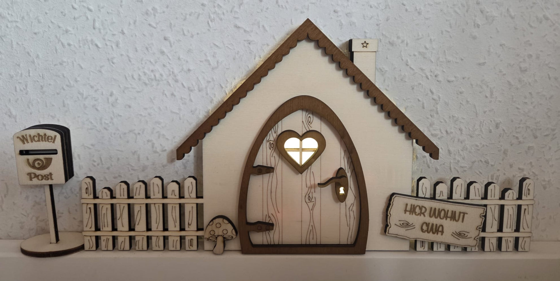 Der Wichtel kommt! Mit dieser handgefertigten Wichteltür öffnet sich eine kleine, magische Welt direkt bei dir. Jede Tür wird aus Holz gefertigt und ist ein echtes Unikat. Ob für kleine Wichtelfreunde, die gespannt auf Abenteuer warten, oder für Erwachsene, die sich einfach verzaubern lassen möchten – diese Wichteltür mit integriertem Briefkasten ist ein Highlight in der Weihnachtszeit. Das personalisierbare Namensschild macht sie zu einem ganz besonderen Accessoires. Platziere sie an der Wand, auf der Fußleiste oder über dem Kamin und lass die Magie beginnen.